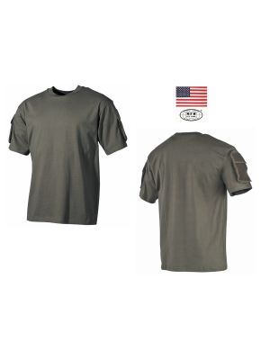 7. T-shirt Maglietta US Manica Corta Verde OD con Tasche Manica MFH Art. 00121b